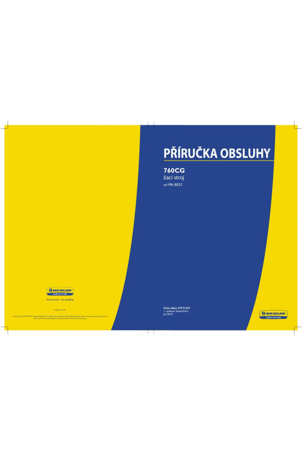 New Holland 760CG Headers Operator`s Manual. New Holland 760CG Grain Header from PIN 8052 Operator`s Manual contains operating, maintenance, safety, and service information, PDF.