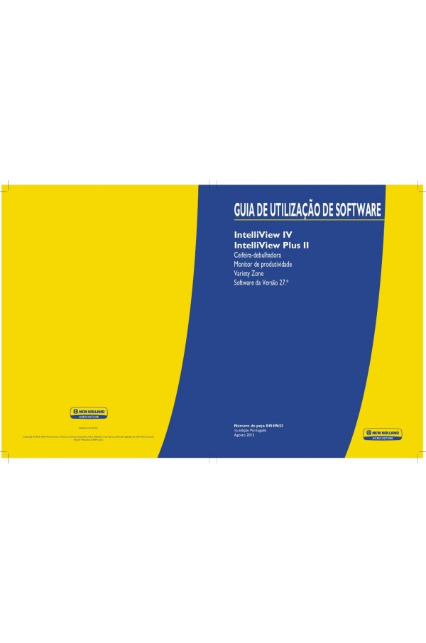 New Holland Intelliview Harvesting Equipment Operator`s Manual. New Holland IntelliView IV, IntelliView Plus II, Combine, Yield Monitor, Variety Zone, Software Version 27.* Operator`s Manual contains operating, maintenance, safety, and service information, PDF.