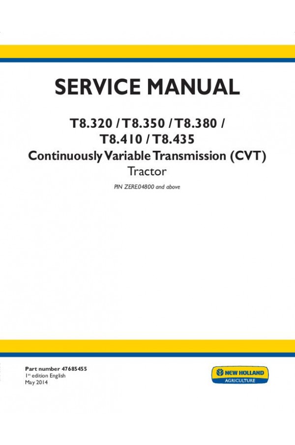 Model: T8.320, T8.350, T8.380, T8.410, T8.435 T8.320, T8.350, T8.380, T8.410, T8.435 CVT and powershift Tractor PIN ZERE0480 Repair Manual